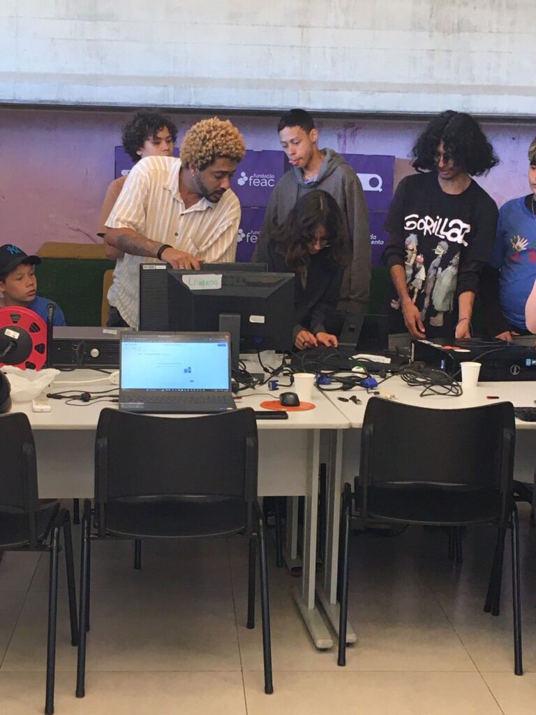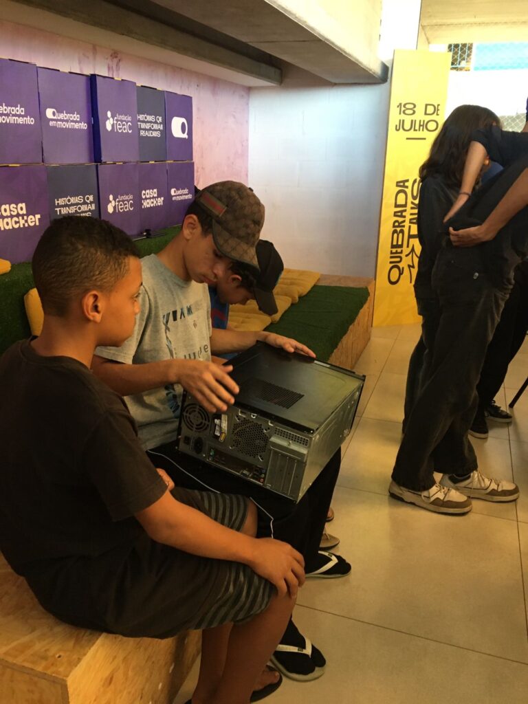 Como contrapartida, o Hub Quebrada em Movimento ofereceu aos adolescentes da Casa dos Anjos a Oficina MegaHacker, uma atividade prática de manutenção e remanufaturamento com três encontros.