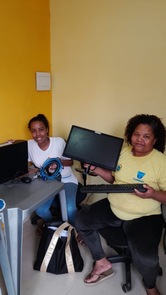 Além disso, a instituição destinou 12 novos computadores que estavam parados para que sejam recuperados e reinseridos no território, fortalecendo ainda mais essa cadeia de reutilização.