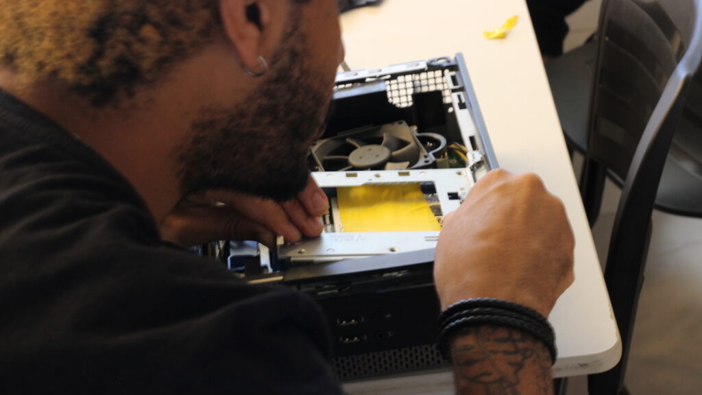 Foram recolhidos 14 computadores que precisavam de reparo e otimização. No Hub, cada máquina passou por triagem, limpeza completa, troca de peças, testes de desempenho e instalação de sistemas mais leves — tudo feito com foco em garantir funcionalidade e durabilidade.
